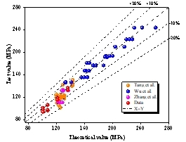 图5 圆形钢管约束胶合竹柱轴压强度理论值和试验值对比