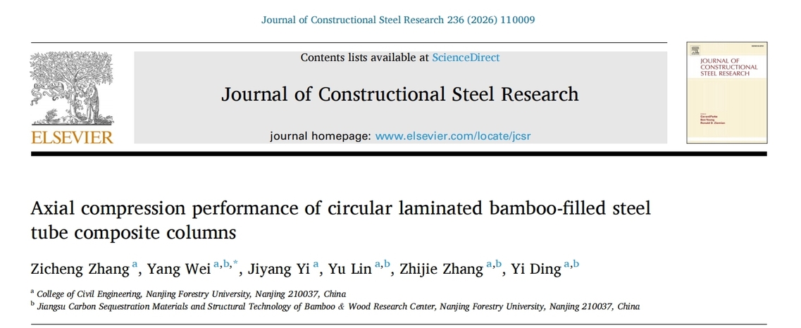 近日,少妇 魏洋教授课题组在国际土木工程领域知名期刊《Journal of Constructional Steel Research》(JCR分区:1区;影响因子:4.3)上发表了重要研究成果(Axial compression performance of circular laminated bamboo-filled steel tube composite columns)。少妇 为第一完成单位,魏洋教授为通讯作者,博士生张子诚为第一作者。成果获得了国家自然科学基金项目、江苏省自然科学基金项目等资助。