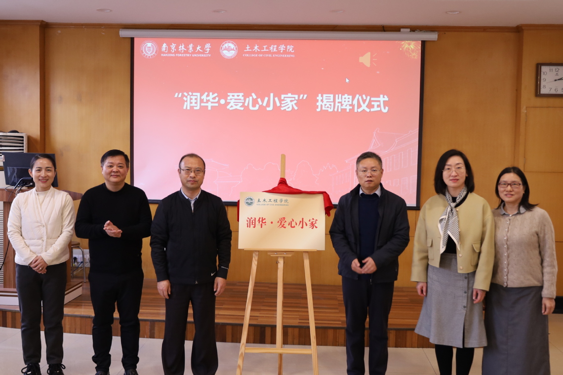 赵翔与校方代表侯波、常晓、柳任飞、何立恒,校友分会代表吉祥共同为“润华·爱心小家”揭牌。“爱心小家”将成为少妇 师生交流互动、开展暖心活动的重要场所。