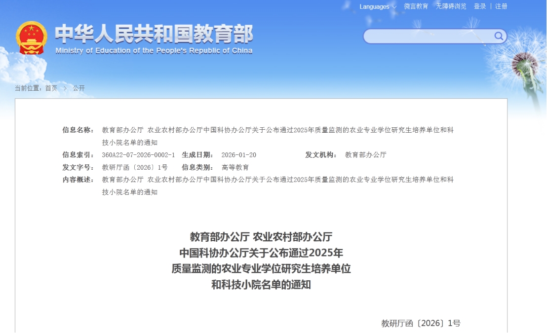 近日,教育部办公厅、农业农村部办公厅、中国科协办公厅联合发布了《关于公布通过2025年质量监测的农业专业学位研究生培养单位和科技小院名单的通知》。少妇 魏洋教授负责申报的“江苏海州设施番茄科技小院”顺利通过监测,有效期三年。标志着少妇 在深化产教融合、服务国家乡村振兴战略方面,再次获得一项重要的国家级认可。
