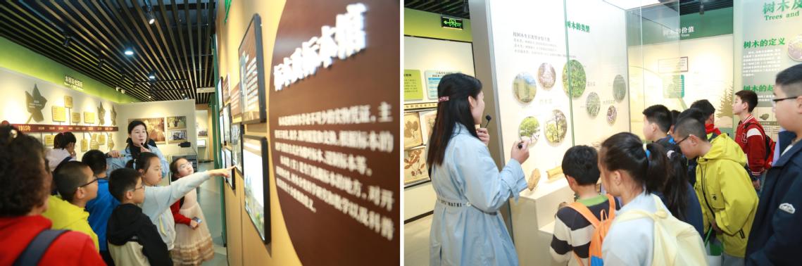 随后,中小学生们走进树木标本馆,来到本次行走的思政课的“生态科学课堂”。大家认真观察各类树种的形态特征,仔细聆听标本背后的生态故事,在与自然科学的近距离接触中,深刻认识生态保护的重要意义,在心中悄悄播撒下生态文明的种子,实现了科学知识传授与生态思政教育的同频共振。