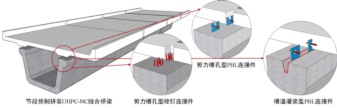 面向国家双碳目标发展需求,大力推广预制装配结构是工程建设行业落实国家节能减排任务的重点发展方向,加速发展高性能材料结构则是我国基础设施建设“绿色低碳”可持续转型的基本策略。高性能、轻量化、工业化为主要特征的新型组合结构桥梁体系完全契合以上要求,是桥梁学科发展的重点方向之一。兼顾高性能、轻量化和经济性的预制装配式UHPC-NC组合桥梁结构体系展现出强大的发展动能和工程推广应用前景。本研究对象主要包括两种适用于全装配式超高性能混凝土(UHPC)-普通混凝土(NC)组合梁的开孔钢板(PBL)剪力连接件:剪力槽孔式和槽道灌浆型PBL连接件。通过试验研究对其典型破坏模式和相应的界面传力机制开展了解耦工作。